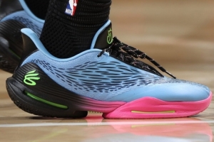 同时,他本场比赛上脚了马刺球星福克斯尚未发布的下一代签名鞋Fox 3的样鞋,鞋舌是福克斯的狐狸Logo鞋后跟侧面则是库里品牌的Logo。值得一提的是,下半年这双鞋库里品牌Logo也将改回安德玛的品牌Logo。
