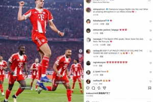 他也在赛后通过社媒晒出自己的庆祝照,并配文:“像这般的欧冠之夜,我们安联球场的氛围太令人难以置信了!”