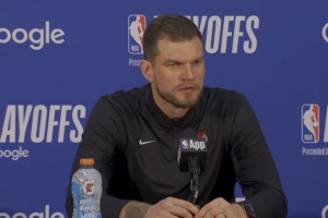 斯普利特:我们在他身上安排了不同的防守人。我们一开始用卡马拉去防,格兰特也防了一会儿,然后我们改打小个阵容,我们的大个子也防过他。当然,他打出了一场不可思议的比赛,35分,三分球6投5中。你知道,很难把他赶出内线。我认为我们在大部分时间里把他赶出内线方面做得很好。当然,他有几次面对小个子防守顺下,那就是白给的得分。但这五记三分球真的伤了我们。