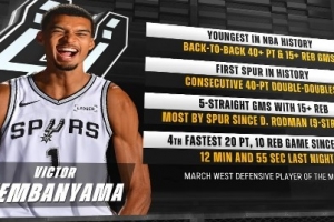 连续5场15+篮板,海军上将(连续9场)后马刺队史首人